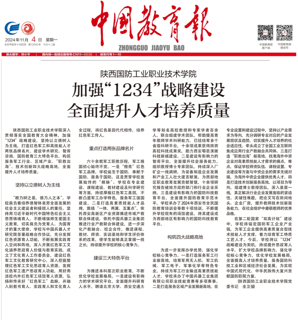 betway必威中文正版深入贯彻落实全国教育大会精神,加强“1234”战略建设,坚持以立德树人为主线,打造红色军工和高技能人才两张品牌名片,建设学术研究、智库咨询、国防教育三大特色平台,构筑服务军工行业、区域产业、“职教出海”、技术创新四大战略高地,全面提升人才培养质量。