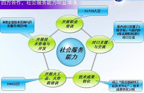 该院有着近60年的军工办学传统,与中国兵器工业有着深厚的血脉联系。学院办学历史最悠久的专业——应用化工技术(火工品技术方向、火炸药技术方向),主要为兵器行业企业培养高技能人才,如今学院化工类专业正在以军民融合产业大发展为契机,深深扎根军工文化传统,利用陕西军工大省的有利优势,创新体制机制,外引与内育并举,打造一支特色鲜明的“双师”人才队伍和博士科研创新团队。