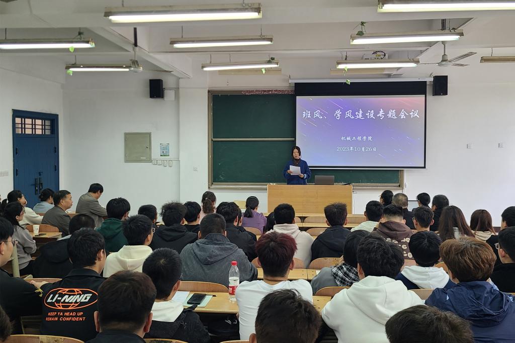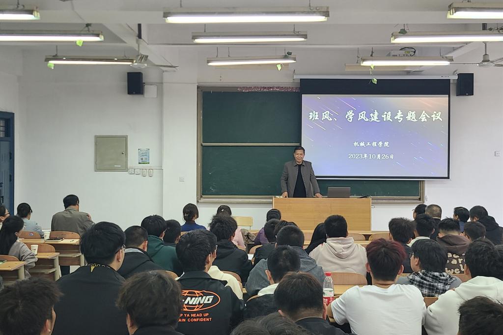 10月26日下午,机械工程学院举行了班风、学风建设专题会议。机械工程学院院长修学强,二级学院学生、教学管理人员,实训中心、教研室主任、全体专兼职辅导员,各班级班委代表等参加了会议。会议由机械工程学院党总支书记刘绪民主持。