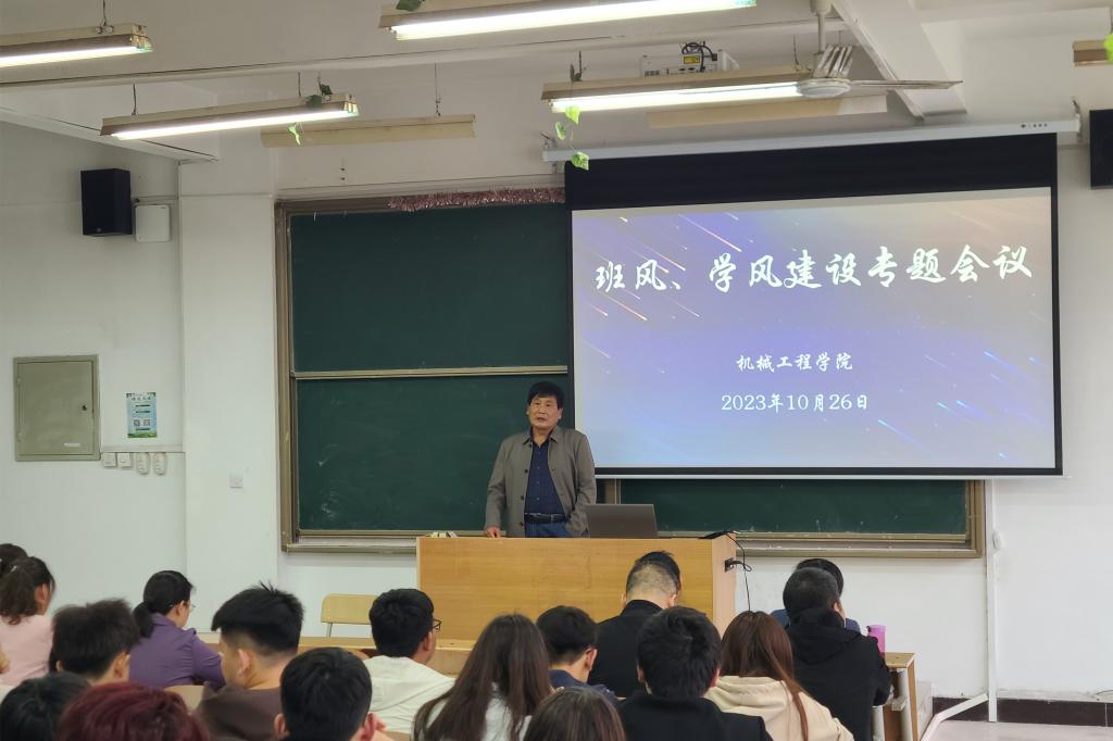 会议伊始,机械工程学院刘绪民详细介绍了本次会议主题和与会人员。他强调,此次会议旨在完善机械工程学院班风、学风长效建设机制,推动优良班风、风学风建设,优化学院整体育人环境、提升育人效果。