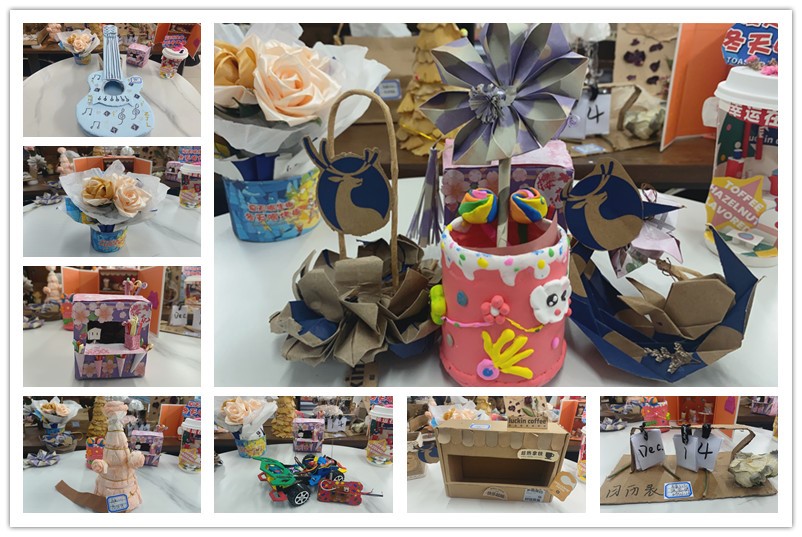 本次活动为手工制作特长和爱好的同学提供一个展示自我的舞台,同学们用一双巧手,大展身手,发挥想象力获得了别致的“宝物”,将环保理念融入到自己的作品中,利用废弃塑料瓶、纸壳,折纸和木条等废弃物品,粘上银杏叶、折纸、花瓣等,制作成精美的装饰品、微型场景、饮水机等。通过这次活动,同学们不仅学会了将生活中的废弃物进行再利用,还学会了如何将环保理念融入到日常生活中。