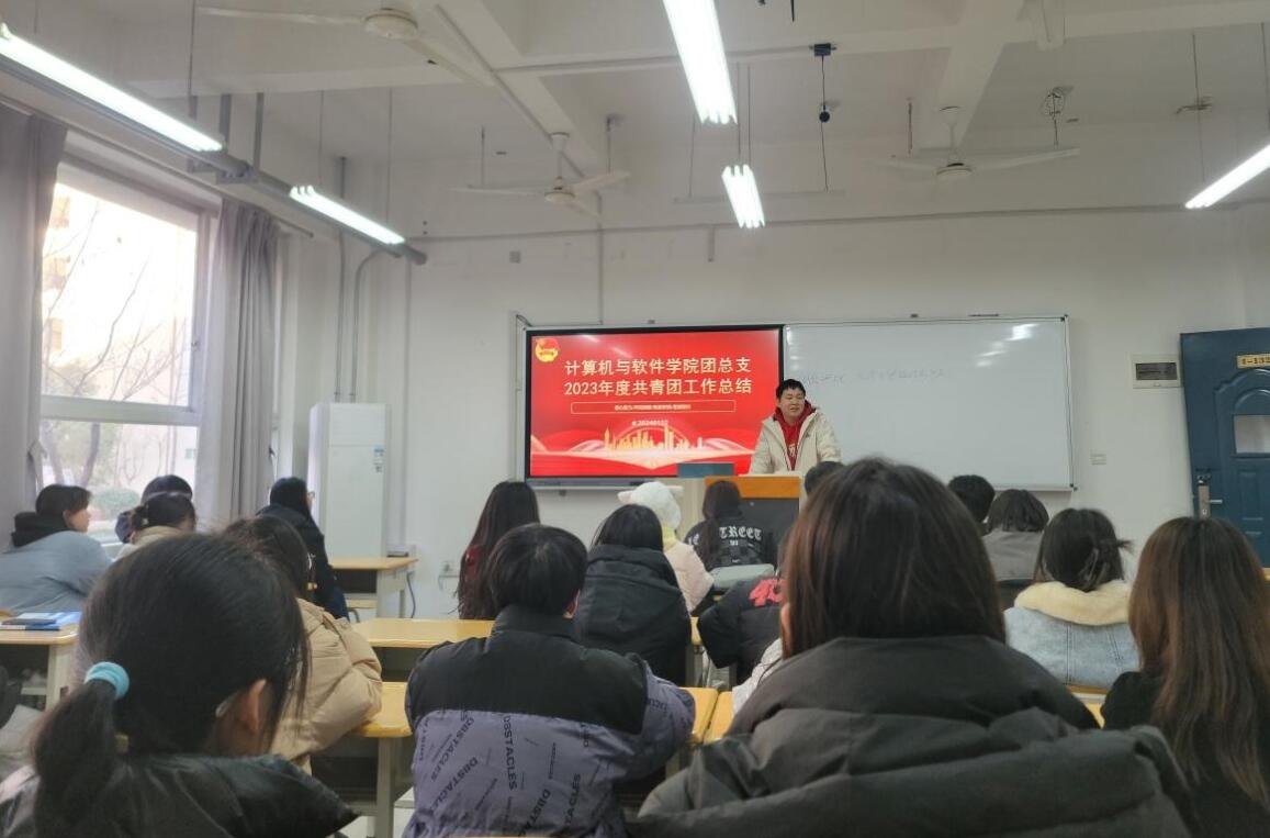 为组织引导各团支部深入学习贯彻习近平新时代中国特色社会主义思想和党的二十大精神,认真总结2023年度共青团工作经验,部署近期工作任务,确保各项工作落到实处、稳步推进,1月2日下午,计算机与软件学院团总支在教四132教室召开了2023年度团建工作总结暨主题教育专题团课宣讲会,322、323级团支书参加会议,会议由团总支书记向仲攀主持。