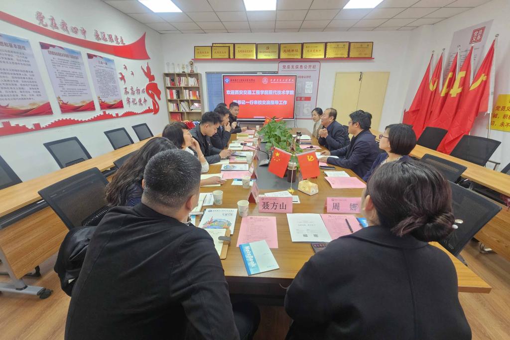 为全面贯彻落实习近平总书记关于党的建设的重要思想,特别是关于学校党建的重要讲话和重要指示精神,进一步提升学校党建工作水平,促进学校党建工作与教育教学工作深度融合,高质量推进学校各项工作优质发展,3月26日上午,西安交通工程学院现代技术学院党委书记田宏顺,教师支部书记、副院长党亮亮,学生支部书记、支部委员、团总支书记等一行来我校进行党建工作学习交流。人工智能学院党总支书记张双琦、党总支宣传委员崔屹嵘、教师支部书记刘春雅、学生支部书记刘沛静参加此次会议,会议由人工智能学院党总支书记张双琦主持。