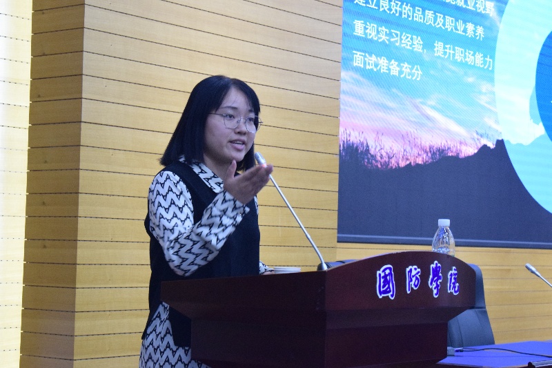讲座最后,王珊珊对本次讲座进行总结,她提出,全体学生要树立明确的职业发展目标与职业理想,不管从事哪一个行业都应该认真负责,肩负起自身的那一份责任,用更饱满的热情投入到学习和工作中。