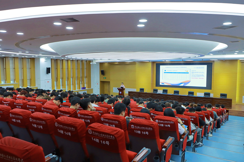 为引导学生树立正确人生目标、明确努力方向,做好大学生涯规划,为就业打下坚实的基础,4月24日下午16点30分特邀资深企业培训师、职业生源规划师赵黎鸿作《做好职业规划 晋阶锦绣前程》报告。报告由智能制造学院学生科科长樊英鸽主持。