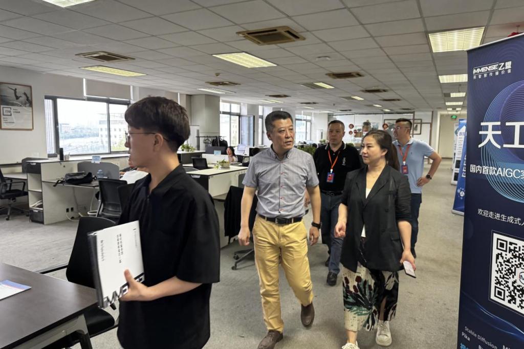 在调研期间,管阳同乙盟企业的专家及技术人员展开了深入且全面的交流。双方围绕 AIGC 技术在教育教学、艺术创作、设计创新等层面的应用进行了热烈探讨。乙盟企业展示了其在 AIGC 领域的最新成果与应用实例,涵盖了利用人工智能生成的绘画、视频、设计作品以及在教学端的应用等,这让学院老师对 AIGC 的巨大潜力有了更为直观且深刻的认知。