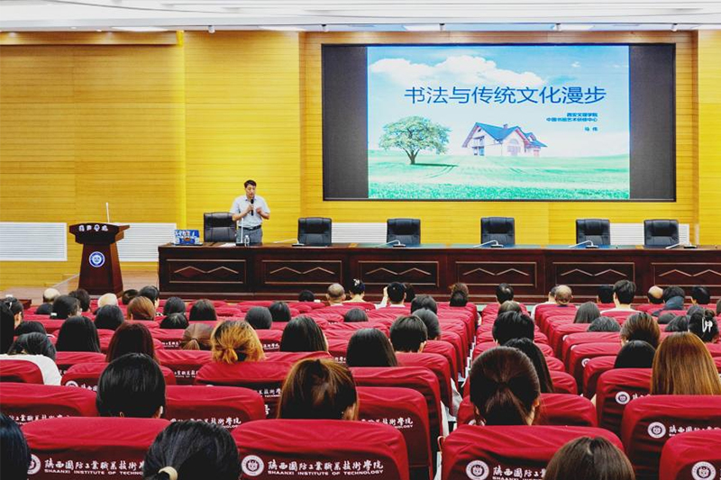 本次活动邀请教育部中国书画等级考试陕西省考务委员会办公室主任、陕西省教育书法研究会副秘书长、陕西慈善书画研究会研究员、著名书法家马伟教授作题为《书法与传统文化漫步》的专题讲座。