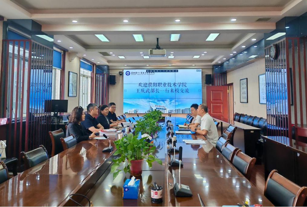 王庆武简要介绍了濮阳职业技术学院基本情况及办学现状,并说明了此次交流学习的目的,希望双方在党建“双创”、“双带头人”工作室、基层党组织建设等方面深化交流合作,互相借鉴发展经验。