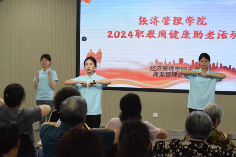 5月16日下午,由经济管理学院主办,离退休管理处和国防馨苑社区协办的“智慧助老进社区”职教周活动,在北校区博逸楼204教室顺利举办。本次活动由经济管理学院副院长王珊珊主持,活动内容包括热身操、老年人口腔操、健康评估、健康宣教、为老人拍摄照片等多项内容,40余名社区老人参与了此次活动。