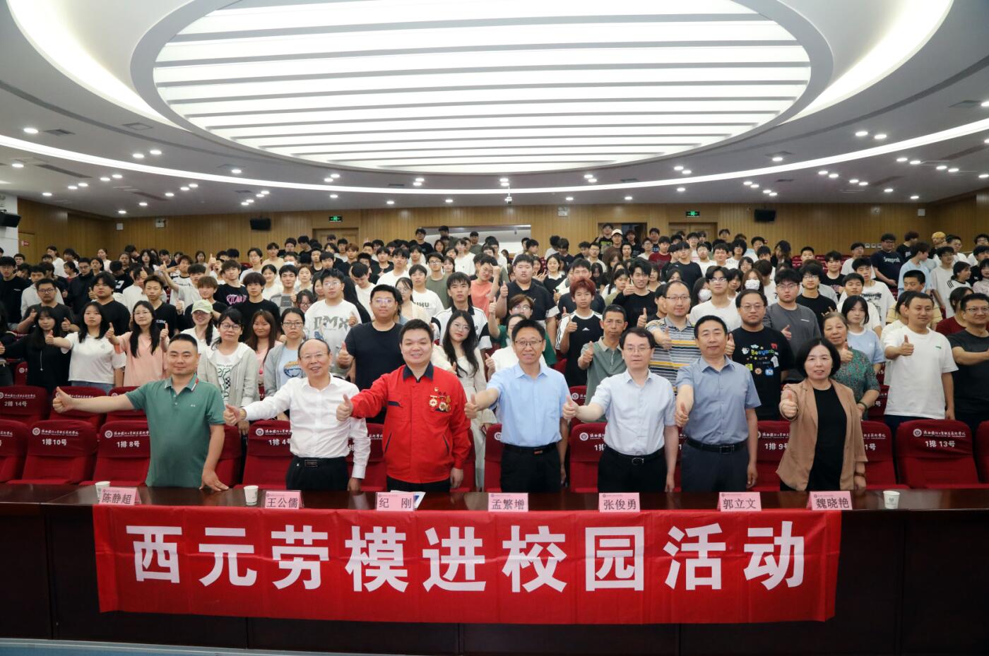 为深入贯彻落实习近平总书记关于职业教育的重要讲话和重要指示批示精神,全面落实立德树人根本任务,大力培养高素质技能人才,助力发展新质生产力,引导大学生培育深厚的劳动情怀,塑造崇尚劳动、崇尚创造的新时代劳动价值观。5月22日下午,由校企合作处主办,计算机与软件学院承办的“劳模工匠进校园-职教周活动”在教四报告厅举行。本次活动特请陕西省劳动模范、“西安好人”——纪刚老师为同学们作题目为“细微中显卓越 执着中见匠心”的演讲报告,西安交通大学开元集团董事长王公儒、陈静超(雁塔区劳动模范)出席本次活动,我校校企合作处、计算机与软件学院相关负责人及教师、学生共计400余人参加本次活动。活动由副校长孟繁增主持。
