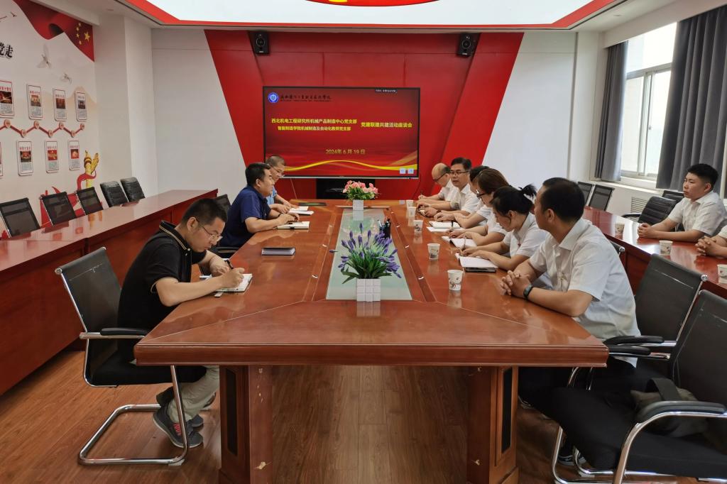 6月19日上午,西北机电工程研究所机械产品制造中心党支部与我校智能制造学院党总支机制教师党支部在学校致远楼305室开展党建联建共建活动,西北机电工程研究所机械产品制造中心主任、党支部书记杨磊一行9人和智能制造学院党总支机制教师党支部党员代表参加活动。活动由智能制造学院党总支书记白福民主持。