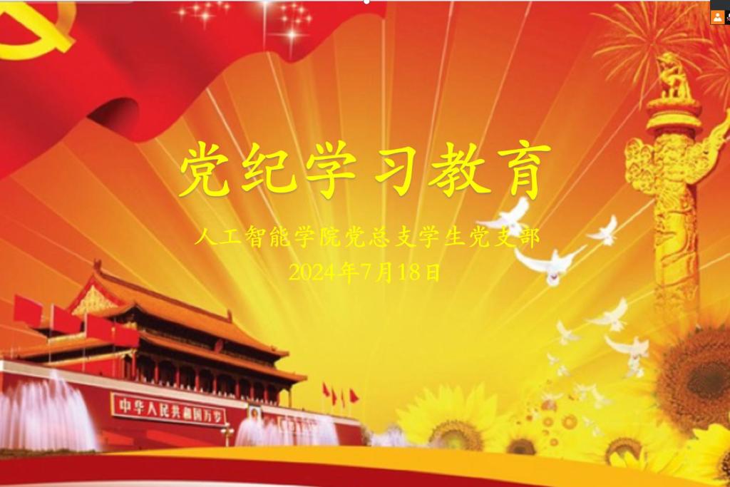 为深入学习贯彻习近平新时代中国特色社会主义思想和党的二十大精神,推进党纪学习教育走深走实,人工智能学院党总支学生党支部于7月18日下午开展党纪学习教育,本次会议采用腾讯会议的形式进行,会议由党支部书记刘沛静主持,支部全体党员参加学习。