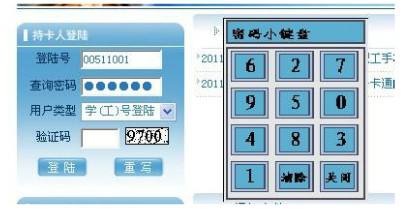 2.在登陆界面左侧,输入持卡人信息。登录号是8位学号,校园卡设有两个密码:“查询密码”和“消费密码”。初始默认密码为身份证后6位(末位×向前顺延)。查询密码是校园卡在进行查询时所用的密码,该密码还将和账号一起用于挂失操作,请务必牢记该密码: