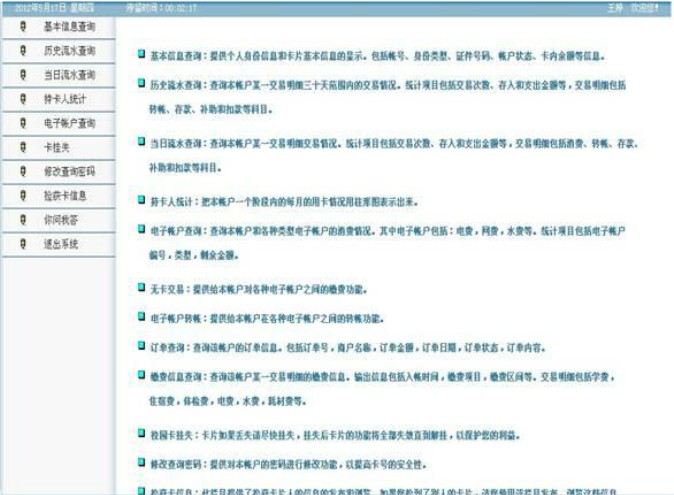 3.输入信息登录后,可以在网页的左侧选择操作项目进行基本操作,操作可根据右侧的提示信息进行。界面如下图: