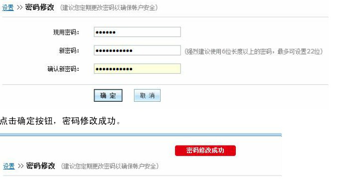 在设置页面点击“修改密码”,跳出如下页面,输入旧密码及两次新密码。