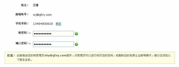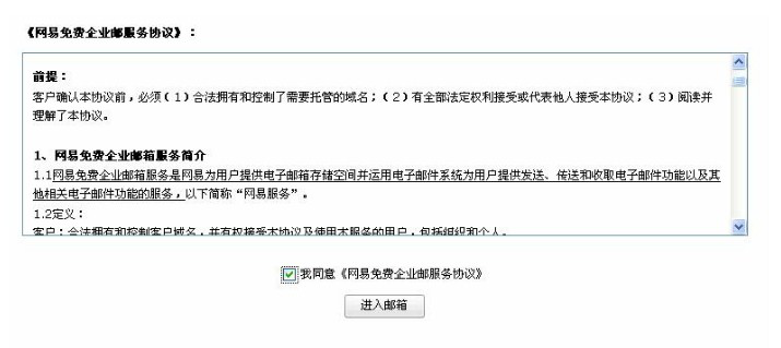 输入两次密码后,选中网页下方的“我同意《网易免费企业邮服务协议》”复选框。如图所示: