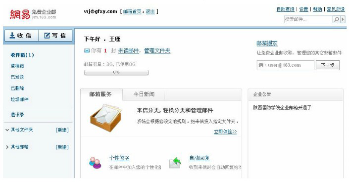 点击“进入邮箱”按钮,进入邮箱界面。如图所示: