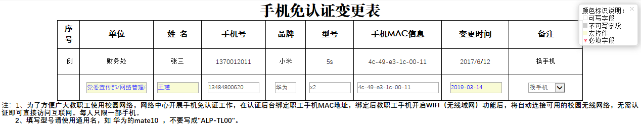 为了便于教职申请网络服务,网络中心提供通过OA申请手机网络免认证、网络中心服务器(虚拟机)、学生作业FTP服务、二级域名、办公室网线及学院公网IP/端口、域名使用等服务,使用方法方便简单。以手机免认证为例,使用方式如下: