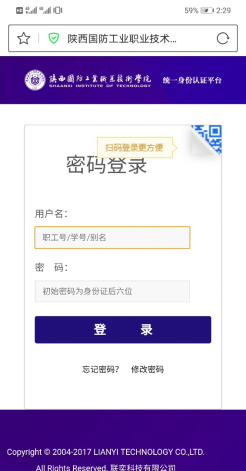 1、校外可以通过移动设备,打开移动端浏览器,输入https://webvpn.gfxy.com,可显示以下界面: