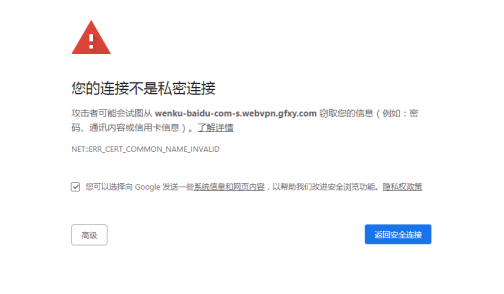 3、 点击对应的资源系统会出现如下的告警界面,点击高级继续前往(不同的浏览器原理一样都,忽略继续前往)
