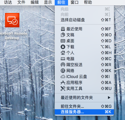 1、在“访达”程序,选“前往”菜单,选择“连接服务器”