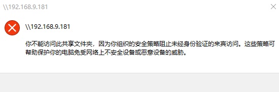 今天有同事跟反馈说win 10系统访问局域网共享文件夹是提示你不能访问此共享文件夹,因为你组织的安全策略阻止未经身份验证的来宾访问(如下图),这是怎么回事呢?