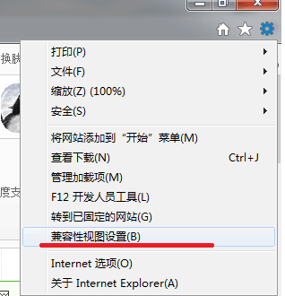 打开IE浏览器,右上角选择小齿轮,点击“兼容性视图设置”,如图: