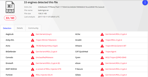 mssecsvc.exe释放自身中的资源文件到C:/Windows asksche.exe, tasksche.exe本应该是勒索程序,但此变种的该程序在主流的windows操作系统上运行出错,从而没有进行勒索行为。