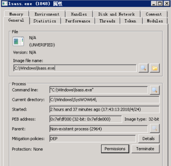 根据源端口,使用工具Process Hacker可以获取到进程名与PID。