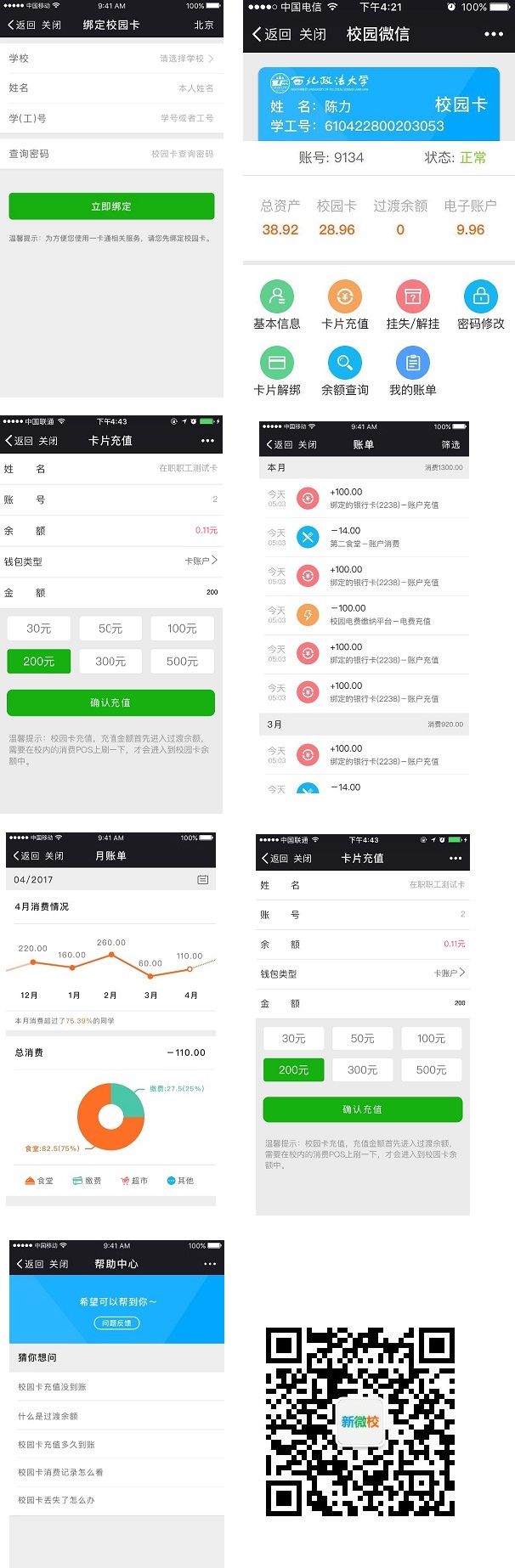 校园卡账户、电子账户等充值,支付方式支持微信支付。 |
