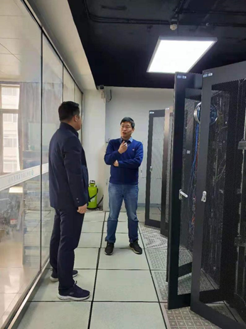 徐华宇向山东传媒职业学院一行教师介绍了我校机房的整体建设情况,并一一介绍了网络、数据中心、桌面云、安全等相关情况,随后还展示了办事大厅、云桌面、上网认证等服务情况。山东传媒职业学院信息中心主任对我校的信息建设成果表示了高度肯定。