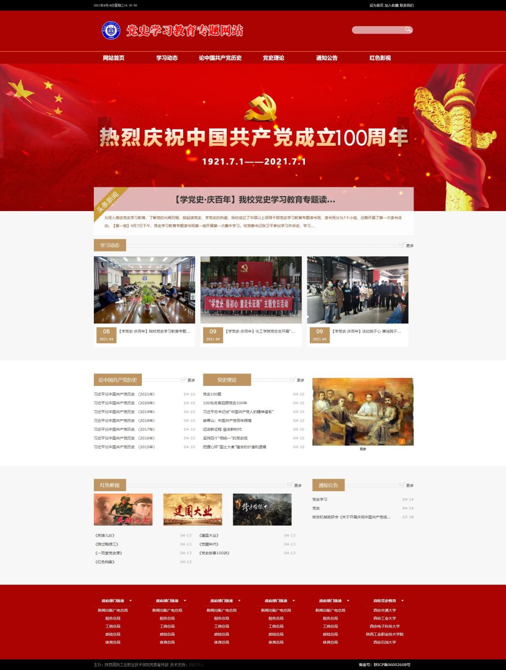 为迎接中国共产党成立100周年,深入贯彻落实党中央关于在全党开展党史学习教育的相关要求和工作部署,确保党史学习教育取得扎实成效,近日,网络中心建设的学校党史学习教育专题网站正式上线。