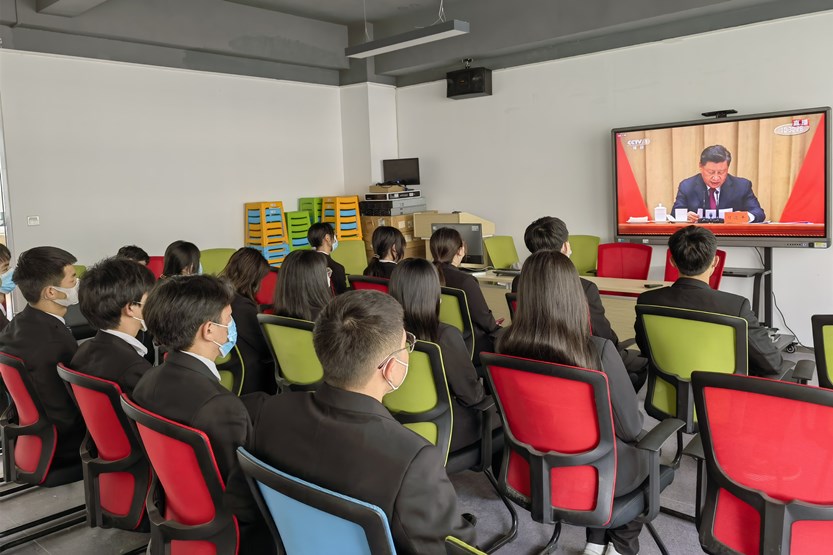 2022年5月10日上午,庆祝中国共产主义青年团成立100周年大会隆重举行,习近平总书记出席大会并作重要讲话。我校组织师生收看了中国共产主义青年团成立100周年大会直播。学校领导,组织部、宣传部、学工部、团委、教师发展中心、马克思主义学院等部门负责人,以及思政课教师和辅导员代表在北区第三会议室集中收听收看。校团委、各分院部积极组织团员青年通过各种形式收看大会现场盛况。会后,习近平总书记重要讲话在我校师生中引发了热烈讨论和广泛热议。