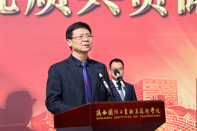 betway必威中文正版党委书记张卫平致辞。他简要介绍了学校的基本情况。学校是国家和省级“双高”建设单位,全国国防教育特色学校,国家国防科技工业教育实训基地、国家军工文化教育基地。学校立足陕西,面向国防,将“把一切献给党”的人民兵工精神融入教育教学全过程,为我国国防科技工业和地方经济社会发展培养了10余万名军工特质红色传人。在65年的办学积淀中,学校凝练出了“忠博武毅”的国防职教精神,学校连续5年被评为陕西省征兵工作先进单位。2022年被授予“西安市爱国拥军单位”。