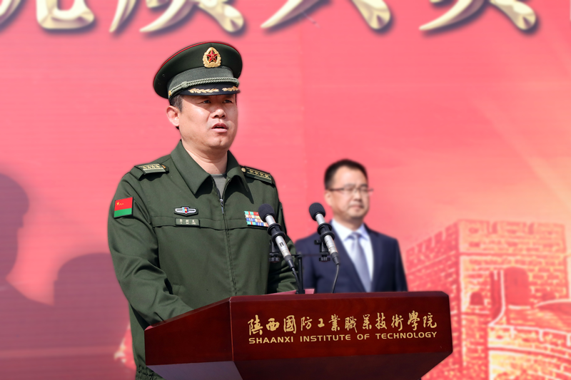 鄠邑区区委书记李化讲话。他表示,“优质兵员储备基地”的揭牌,标志着鄠邑区征兵工作迈上新征程、开启新篇章。希望学校能够弘扬“忠博武毅”的国防职教精神,发挥国防职教方面的特色优势,培养出更多的高技术能手、高素质人才,为党的国防事业做出更大的贡献。希望学员们为新时代国防事业挥洒激情与热血,把青春梦融入强军梦,勤奋刻苦学习,当好红色传人。鄠邑区将一如既往地支持优质兵员储备基地建设,支持国防和军队建设,健全完善军地协作机制,推进军民融合发展,巩固军政军民团结局面,努力营造重视国防、关心国防、支持国防的浓厚氛围。