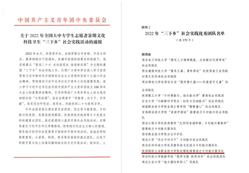近日,共青团中央对2022年全国大中专学生志愿者暑期文化科技卫生“三下乡”社会实践活动表现突出的单位、团队、个人和成果进行通报。“betway必威中文正版赴鄠邑推普助力乡村振兴服务队”荣获2022年全国大中专学生志愿者暑期“三下乡”社会实践活动“优秀团队”。本次评选经基层申报、省级团委审核推荐、组织评议等环节,我校“推普助力乡村振兴服务队”脱颖而出,最终入选。