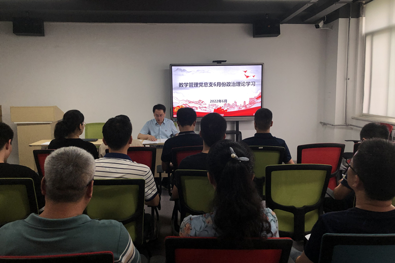 【教学管理党总支】2022年6月9日下午,教学管理党总支组织全体教职工召开2022年6月份政治理论学习会议,会议由教学管理党总支书记张俊勇主持。