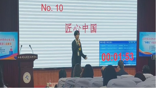 2023年5月5日-7日,陕西省高职院校技能大赛英语口语赛项在西安铁路职业技术学院举行。本届大赛由陕西省教育厅主办,西安铁路职业技术学院承办,外语教学与研究出版社协办。全省34所高职院校共计71名选手参加了比赛,其中包括英语专业组10人以及非英语专业61人。8月14日陕西省公布了获奖名单,我校基础课部教师王宝贤指导的参赛选手郗浩翔(我校22级机械制造及自动化专业学生)荣获省赛一等奖。
