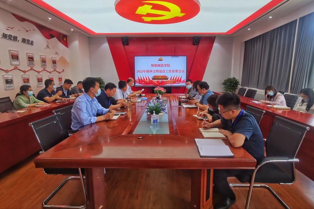 为深入开展我院精神文明建设工作,促进分院各项工作和谐发展,着力加强师生思想道德建设,落实立德树人根本任务,不断提高分院师生员工文明素质。根据学校(陕国职党发〔2022〕8号)、(陕国职党发〔2022〕10号)、(陕国职党发〔2022〕16号)和(陕国职党发〔2022〕11号)文件精神,并结合二级学院实际情况,特制定《智能制造学院2022年精神文明建设工作行动实施方案》。4月26日下午,智能制造学院在10-305组织召开了2022年精神文明建设工作部署会议,全体教职工参加会议,会议由智能制造学院党总支书记白福民主持。