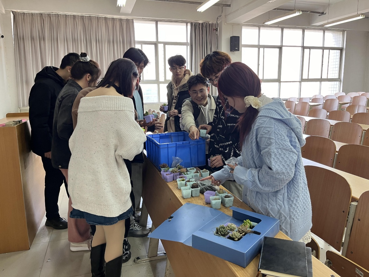 在校内树木浇水的环节中,学生们积极参与,带着浇水壶,轻轻滋润每一株绿叶。这不仅是对树木的爱护,更是对环境保护的实际行动。同学们用实际行动诠释了“一片绿叶,一份责任”的理念,共同为校园增添了一份生机。而在多肉种植领养环节,同学们聚精会神地将小小的多肉植物悉心栽培。通过亲手培育植物,他们体验到了生命的成长,同时为学院内部环境增色不少。这也成为学院实践生态文明的一次富有创意的尝试。