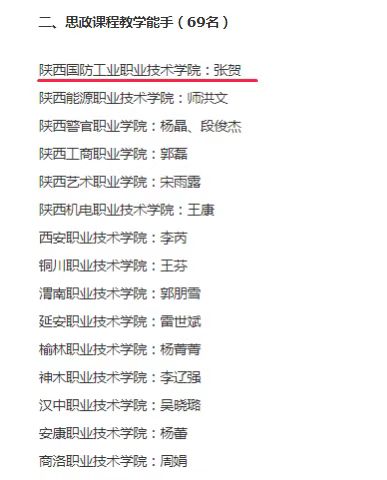 4月28日,中共陕西省委教育工委、陕西省教育厅公布了2021年度陕西高校思政课教师“大练兵”省级展示活动获奖教师名单。我校马克思主义学院教师张红斌、张贺分别荣获“思政课程教学标兵”“思政课程教学能手”,基础课部教师王宝贤荣获“课程育人教学标兵”。