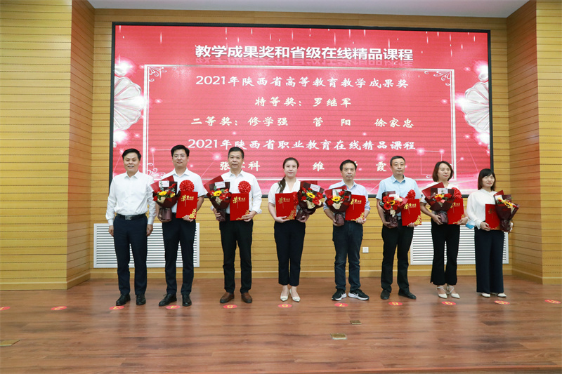 大会对2021-2022学年在教学、科研、管理上做出突出贡献的团队和集体进行了表彰。他们分别是2022年陕西省高校黄大年式教师团队,2022年陕西省师德建设示范团队,2021年度陕西高等职业学校教学管理工作先进集体,第七届中国国际“互联网+”大学生创新创业大赛陕西赛区组织工作先进集体,2022年陕西省职业院校技能大赛(高职组)优秀组织奖,2021 年度“双百工程”先进单位,2021年陕西省高等教育教学成果奖以及陕西省在线精品课程获奖团队。