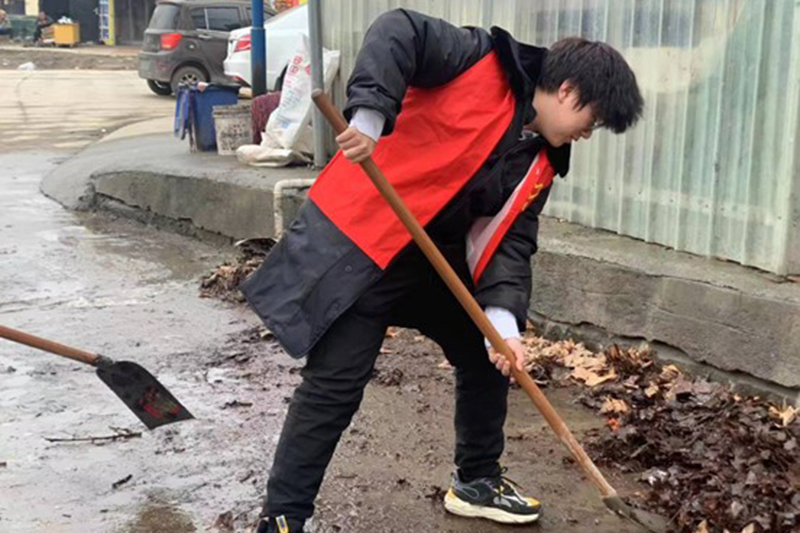 接着,志愿者们跟随社区负责人领取劳动工具,前往社区需要清理的地方进行彻底打扫。对于路边堆积的垃圾,几位同学没有任何抱怨,迅速投入到清扫工作中,分工明确,共同努力下,路边的环境得到显著改善。