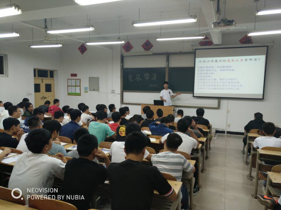我院以党的十八大和十八届六中全会精神为活动指导思想,紧密围绕“学宪法讲宪法”活动精神召开主题班会,通过观看视频和学习文字材料,充分了解了宪法的基本内涵。辅导员积极教育引导广大青年学生了解宪法、尊崇宪法,弘扬宪法精神,增强法治观念,引导学生形成“学法、知法、守法、护法”的意识。