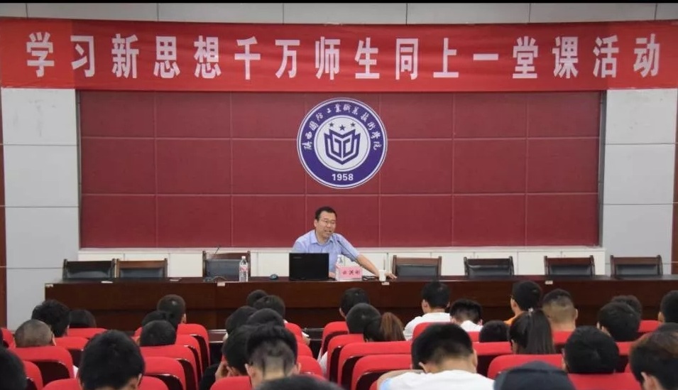 为深入学习和贯彻落实好习近平新时代中国特色社会主义思想和党的十九大精神,宣传贯彻落实习近平总书记在北京大学师生座谈会和纪念马克思诞辰200周年大会上的重要讲话精神,根据教育部、省教育厅、学校党委的安排部署,6月12日晚7:30,我校在北区教二报告厅举行了“学习新思想千万师生同上一堂课”活动,陕西师范大学学工部副部长曲洪刚博士走进我校授课,全校各班级学生干部代表、院学生会和院团委的学生干部代表共计260名学生现场聆听了报告。活动由必威app安卓版无弹窗部副部长潘冬主持。
