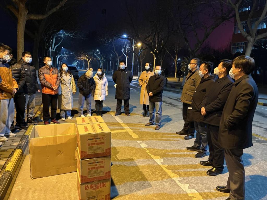 1月4日晚,校党委书记张卫平、校长刘敏涵、党委副书记杨聪、纪委书记王玉一行来到学生5号公寓对疫情防控一线辅导员老师们进行了慰问,并与一线辅导员老师进行了亲切的交谈。