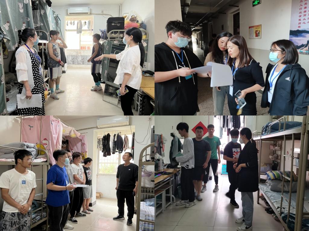 随后各二级院部相关人员深入学生宿舍,重点对宿舍卫生、用电安全、管制刀具及传染病预防情况进行了检查,并为每一个宿舍做出详细评价与指导。