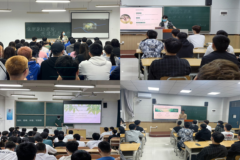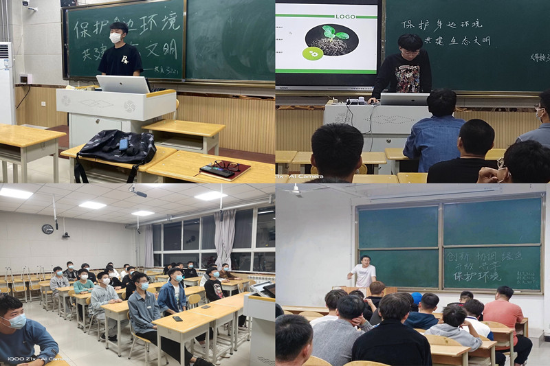 通过辅导员、班干部带头领学,师生互动分享身边环境保护的典型案例和故事,以及“环保知识大比拼,绿色理念记心间”等问答活动。从现存生态危机、习近平生态文明思想和环境保护法等学习,将生态、低碳、环保与日常生活紧密结合,通过讨论环境保护、低碳生活、绿色出行、光盘行动等“热门话题”发表了自己的看法,学生们积极参与,热情高涨。