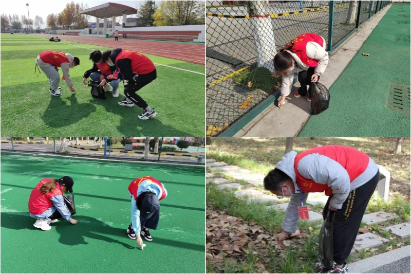 活动开始前,学习部成员有序集合,领取志愿服和垃圾袋。活动正式开始,同学们分散在校园各处,不放过任何一个角落拿着垃圾袋清理杂物,大家把捡拾到的烟蒂、饮料瓶、纸屑等垃圾放进随身携带的垃圾袋中,最后进行垃圾分类放入垃圾桶。经过同学们的辛勤劳动,校园捡拾垃圾工作最终圆满完成,大家用实际行动践行了绿色文明的理念,用劳动创造了干净整洁的校园环境。