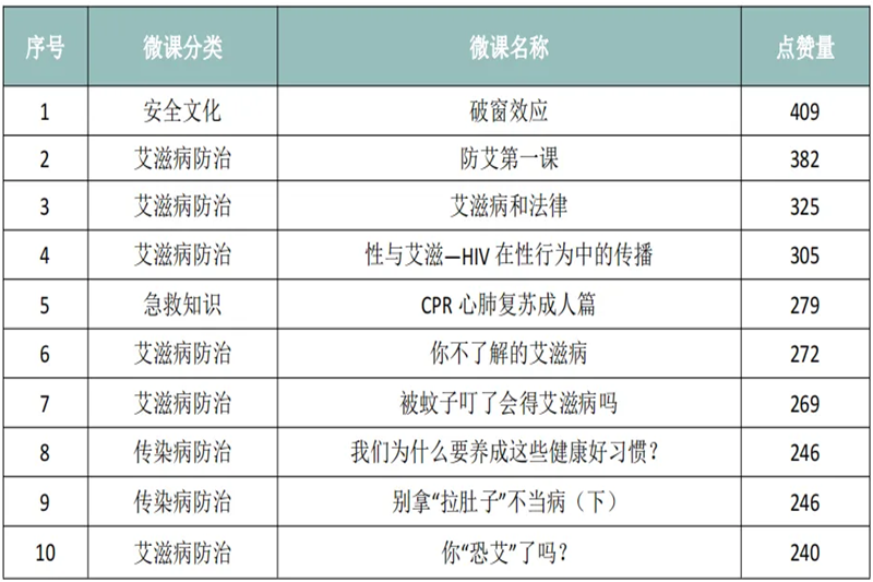 易班新生安全教育学习主要涉及传染病防治、安全文化、急救知识、恋爱与性知识、艾滋病防治、诚信与法律、身体健康7 个类别,共计 40 门微课。其中较受我校2023级新生欢迎的课程是:《破窗效应》《防艾第一课》《艾滋病和法律》《CPR心肺复苏成人篇》等。